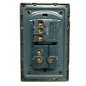 $69.00Placa metálica de 2 interruptores y 3 vías con apagador de acero inoxidable.