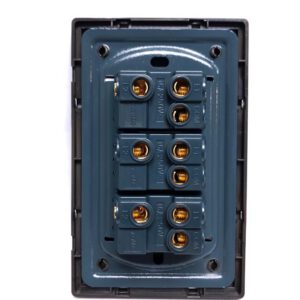 Placa metálica de 3 interruptores y 3 vías con apagador de acero inoxidable.